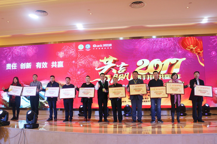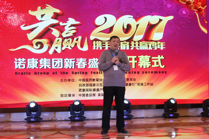 大会上,原食品药品监督管理局局长,药学会会长杨作春、皖南医学院药学院院长刘晓平、芜湖职业技术学院党委宣传部部长汪中银、中医药高等专科学校药学系书记王利民分别致辞,对诺康集团的产品质量、人才培养、文化理念和管理模式给予了充分肯定,并一致表示,新的一年,愿与诺康集团继续加强合作,携手前行,为推动中国大健康事业的发展共同努力,多做贡献。中国医药教育协会会长黄正明先生特地从北京发来祝贺视频,向大会表示热烈的祝贺。他在贺辞中对诺康集团积极投身“慢病防治健康行”公益活动,为普及传播健康养生知识,推动全民健康养生活动做出的成绩给予了高度评价,并祝愿诺康集团在新的一年里,继续努力,锐意进取,再接再励,续写辉煌。